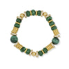 Bracelet élastique en rondelles dorées et rondelles zircon de 8 mm, composé de perles naturelles. Existe en agate noire, oeil de tigre, malachite, sodalite et turquoise.