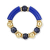 Bracelet élastique composé de pierres naturelles, de perles de résine, ainsi que de perles de métal dorées à l'or fin 24k. Existe en Agate Noire, Unakite, Bleu Sodalite et Vert Bouteille.