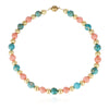 Collier en perles en laiton brossées dorées à l'or fin 24k avec perles de 10 mm en Jaspe Turquoise et Corail.