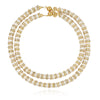 Collier composé d'intercalaires strassés et de perles nacrées.