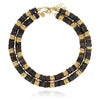 Collier de perles en forme de rondelles heishi en nacre et d'intercalaires en métal dorées à l'or fin ainsi que d'intercalaires strassés.