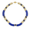 Collier composé de pierres naturelles, de perles de résine, ainsi que de perles de métal dorées à l'or fin 24k. Existe en Agate Noire, Unakite, Bleu Sodalite et Vert Bouteille