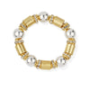 Bracelet élastique en perles cylindriques en laiton brossées dorées à l'or fin 24k avec perles de 10 mm.