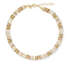 Collier en rondelles dorées et rondelles zircon de 8 mm et en perles de nacres teintées multicolore. Existe en bleu marine, blanc et multicolor.